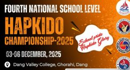 दाङ,११ मंसिर । दाङको घोराहीमा हुन थालेको चौथो राष्ट्रिय विद्यालयस्तरीय हाप्किडो प्रतियोगिता–२०८२ को तयारीलाई तीव्र पारिएको छ । यहि मंसिर १६ देखि २० गतेसम्म घोराहीस्थित दाङ भ्याली कलेजमा हुन थालेको प्रतियोगिताको प्रचारप्रसारसँगै आवास, भौतिक संरचना, सुरक्षा, प्राविधिक व्यवस्था र स्वयंसेवक परिचालनलगायको व्यवस्थापनका लागि तयारीलाई तीव्र पारिएको हो । नेपाल हाप्किडो