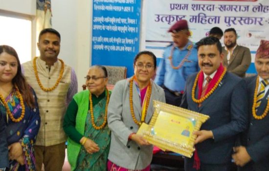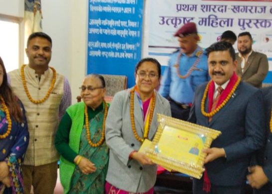 दाङ, २५ फागुन । त्रिभुवनगर जेसीजमा स्थापना गरिएको शारदा–खगराज लोहनी उत्कृष्ट महिला पुरस्कार यस वर्ष बिमला योगीलाई प्रदान गरिएको छ । जेसीजमा स्थापना गरिएको पुरस्कार अन्तर्राष्ट्रिय श्रमिक महिला दिवसको अवसरमा आइतवार प्रथम पटक योगीलाई प्रदान गरिएको हो । उनलाई नगद, प्रमाण र मेडलसहितको पुरस्कार प्रदान