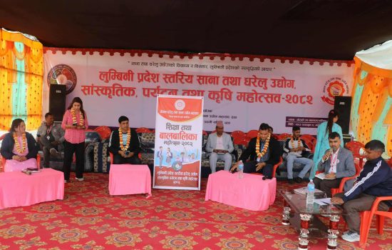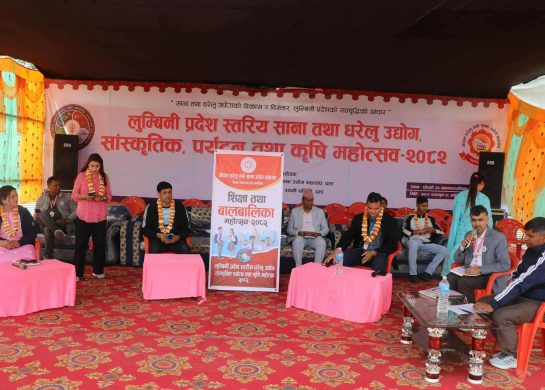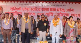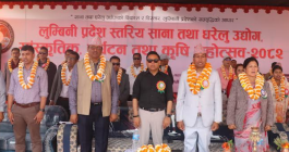लुम्बिनी प्रदेशस्तरीय महोत्सव घोराहीमा सुरु घोराही, २८ फागुन । घोराहीमा लुम्बिनी प्रदेशस्तरीय महोत्सव विहीवारदेखि सुरु भएको छ । नेपाल घरेलु तथा साना उद्योग महासंघ जिल्ला शाखा दाङको आयोजना फागुन २८ देखि चैत १५ गतेसम्म सञ्चालन हुने ‘लुम्बिनी प्रदेशस्तरीय साना तथा