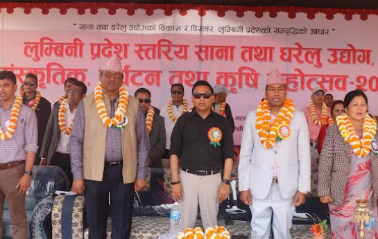 लुम्बिनी प्रदेशस्तरीय महोत्सव घोराहीमा सुरु घोराही, २८ फागुन । घोराहीमा लुम्बिनी प्रदेशस्तरीय महोत्सव विहीवारदेखि सुरु भएको छ । नेपाल घरेलु तथा साना उद्योग महासंघ जिल्ला शाखा दाङको आयोजना फागुन २८ देखि चैत १५ गतेसम्म सञ्चालन हुने ‘लुम्बिनी प्रदेशस्तरीय साना तथा घरेलु उद्योग, सांस्कृतिक, पर्यटन तथा