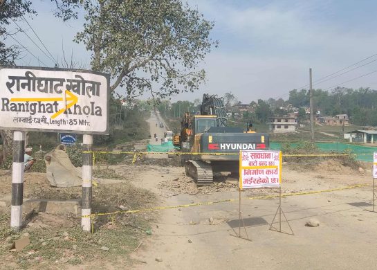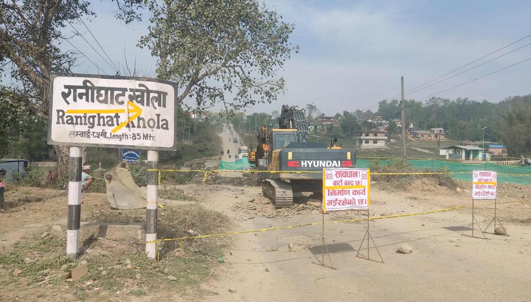 दाङ, २१ चैत । पुल निर्माणका लागि सम्झौता भएको म्याद सकिएको सात महिनापछि रानीघाट खोला (काला खोला) मा पुल निर्माणको काम सुरु भएको छ । घोराही–तुलसीपुर चारलेन सडक खण्ड अन्तर्गत तुलसीपुर उपमहानगरपालिका–७ स्थित रानीघाट खोलामा पुल निर्माणको काम सुरु भएको हो । काला खोलामा ९०