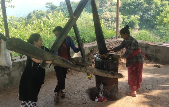 लीलाधर वली दाङ, ३० असोज । घोराही उपमहानगरपालिका–१८ घोरदौरा निवासी मतिकला महरालाई चिउरीको बिजुला (फलको दाना) पेलेर तेल निकाल्न भ्याइनभ्याइ छ । तिहारमा रोटी पकाउनका लागि आवश्यक पर्ने चिउरीको तेल