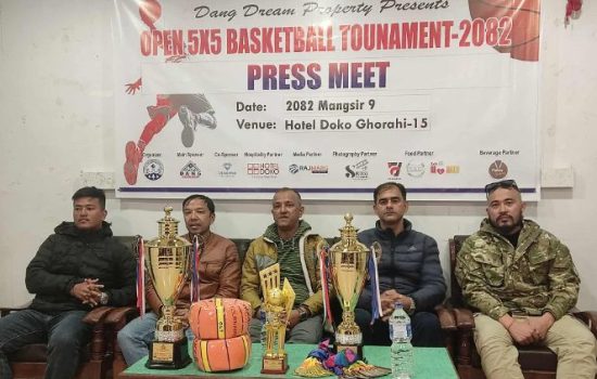 दाङ,९ मङ्सिर । घोराहीमा खुल्ला बास्केटबल प्रतियोगिता–२०८२ हुने भएको छ । जिल्ला बास्केटबल संघ दाङको आयोजनामा यहि मंसिरको १० देखि १३ गतेसम्म खुल्ला ५÷५ बास्केटबल प्रतियोगिता हुने भएको हो ।