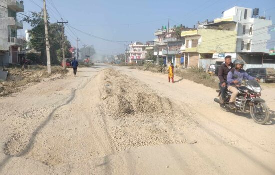 घोराही, २२ कात्तिक । म्याद सकिएको २१ दिन वितिसक्दा पनि घोराही–तुलसीपुर चारलेन सडक मर्मतको काम पुरा हुन सकेको छैन । सडकमा परेका खाडल र धुलोका कारण सवारी साधन सञ्चालनसँगै धुलोका