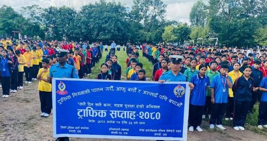 घोराही, १९ असोज । आम नागरिकहरुलाई ट्राफिक नियमको बारेमा जानकारी गराउने र अनिवार्य पालना गर्न लगाउने उदेश्यले दाङमा सुरुभएको ट्राफिक सप्ताहको दोस्रो दिन ३५ सय बढी विद्यार्थीहरुलाई प्रशिक्षण दिईएको छ