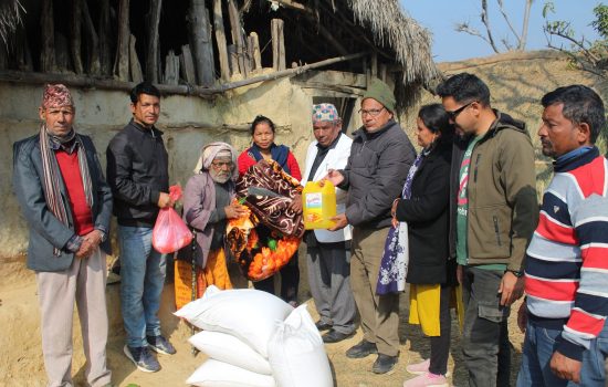 दाङ, ३ फागुन । घोराही उपमहानगरपालिका वडा नं. ४ का अध्यक्ष भीमबहादुर सार्कीले विपन्न जेष्ठ नागरिकलाई खाद्यान्न सहयोग गरेका छन् । घोराही उपमहानगरपालिका–१ सल्लीकोट माले बस्दै आएका ७४ वर्षीय लक्ष्मीप्रसाद