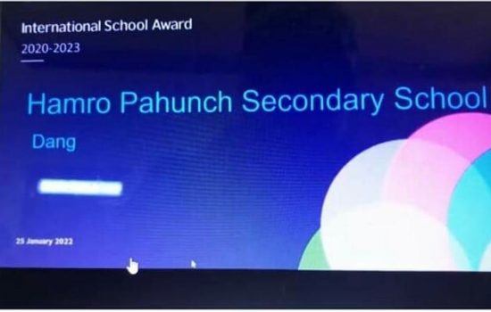 दाङ, १३ माघ । हाम्रो पहुँच बहुउद्देश्यीय सहकारी संस्था लिमिटेडद्वारा संचालित हाम्रो पहुँच माध्यमिक विद्यालयले इन्टरनेशनल स्कुल अवार्ड २०२१ प्राप्त गरेको छ । दाङको तुलसीपुर उपमहानगरपालिका वडा नम्बर ७ झुमरेमा