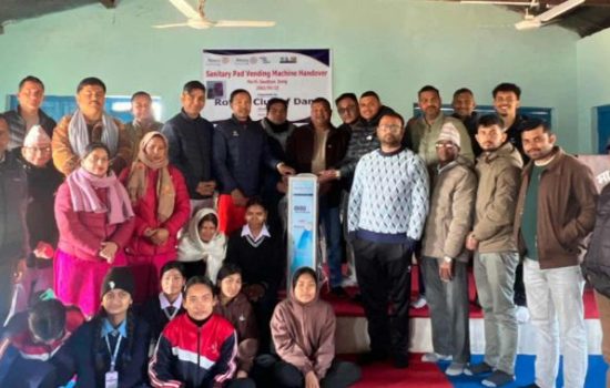 दाङ,२३ पुस । रोटरी क्लब अफ घोराही, दाङले श्री माध्यमिक विद्यालय सौडियारलाई सेनेटरी प्याड भेन्डिङ मेसिन सहयोग गरेको छ। बुधबार एक कार्यक्रमको आयोजना गरेर क्लबले विद्यालयलाई उक्त मेसिन हस्तान्तरण गरेको