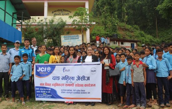 घोराही, १० भदौ । दाङ महिला जेसीजले बालबालिकाहरुलाई लक्षित गरेर बंगलाचुली ३ भेँडाबारी मुलाबारीमा बालविवाह न्यूनीकरण सम्बन्धी सचेतनामूलक कार्यक्रम गरेको छ । महिला जेसीजकी अध्यक्ष शारदा घर्तीको अध्यक्षता तथा श्री