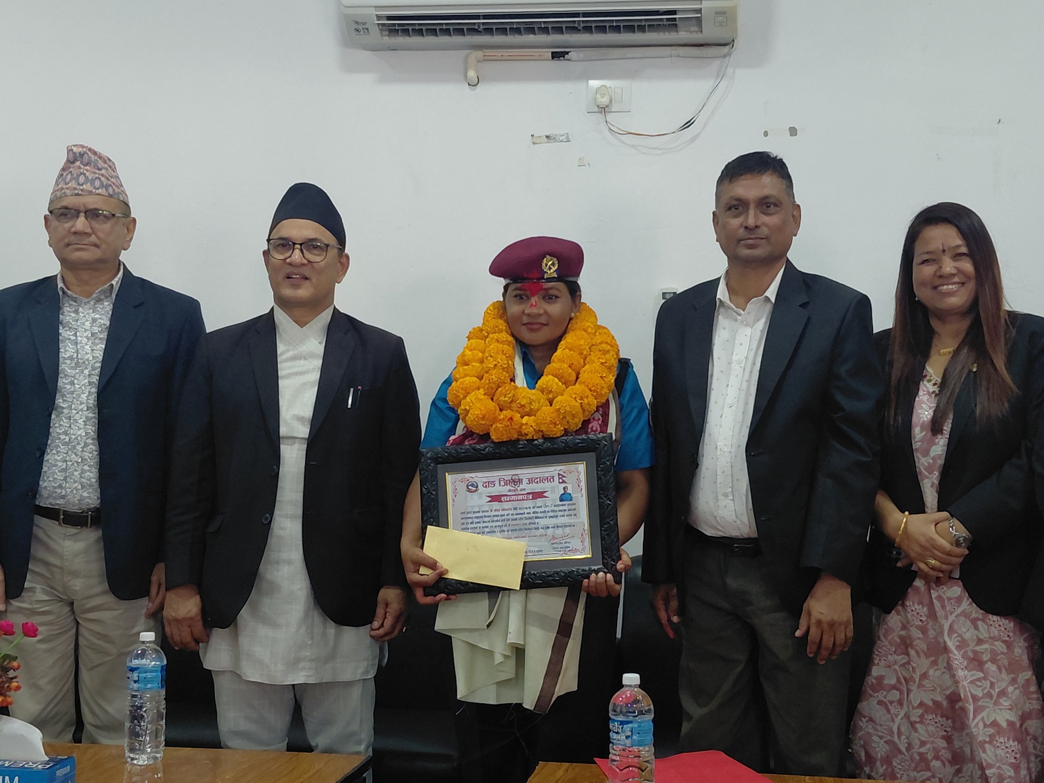 दाङ, २३ असोज । दाङ जिल्ला अदालतले सहायक प्रहरी हवल्दार संगीता अधिकारीलाई नगदसहित सम्मान गरेको छ ।