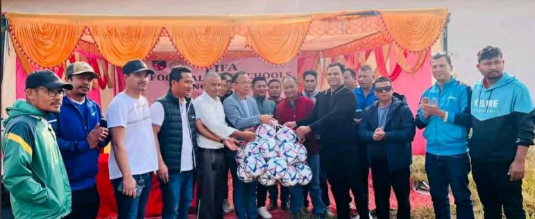 अखिल नेपाल फुटबल संघ (एन्फा)को सहयोग र दाङ जिल्ला फुटबल संघको आयोजनामा फुटबल वितरण गरिएको हो । अखिल नेपाल फुटबल संघका अध्यक्ष पंकज बिक्रम नेम्वाङले फुटबल वितरण कार्यक्रमलाई सम्बोन गर्दै विद्यालय तहबाट फुटबलको विकाससँगै नयाँ खेलाडी उत्पादन गर्नेका लागि फुटबल वितरण गरिएको बताएका थिए । फिफा फुटबल फर स्कुल कार्यक्रमअन्तर्गत बालबालिकालाई फुटबल प्रशिक्षण गराउने कार्यक्रमसहित फुटवल वितरण गरिएको हुँदा त्यसले नयाँ र प्रतिभावान खेलाडी उत्पादनमा सहयोग पुग्ने उनले आशा ब्यक्त गरे ।
