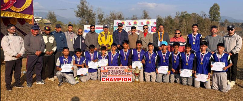 दाङ,१२ पुस । गुरुकुल दाङ जिल्लास्तरीय अन्तरविद्यालय क्रिकेट प्रतियोगिता सिजन–२ को उपाधि पुरन्धारा एभेरेष्ट एकेडेमीले जितेको छ । घोराही उपमहानगरपालिका–१७ स्थित घोराही क्रिकेट मैदानमा शनिवार भएको प्रतियोगिताको फाइनल खेलमा पुरन्धारा एभरेस्ट एकेडमीले ग्रेट अरनिको स्कुललाई ८ विकेटले पराजित गर्दै उपाधी चुमेको हो ।