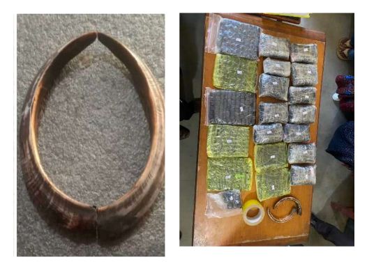 बनगाउँ चौतारी टोलस्थित सम्पदा बुढा मगरको घरमा खानतलासी गर्दा कोठाभित्र लुकाई राखिएको सुटकेसबाट लागुऔषध खैरो हेरोइन जस्तो देखिने पदार्थ २० पुडिया (बिस) शुद्ध तौल नौ किलो ६१९ ग्राम र सोही झोलाभित्र राखिएको जंगली जनावरको जस्तो देखिने सिङ २ थान बरामद गरिएको जिल्ला प्रहरी कार्यालय दाङका सूचना अधिकारी एवं प्रहरी नायव उपरीक्षक चक्रबहादुर शाहले जानकारी दिएका छन् । उनका अनुसार प्रहरीले घटनास्थलबाट २९ वर्षीय सम्पदा बुढा मगर र ३० वर्षीय हासी पुन मगरलाई नियन्त्रणमा लिएको छ ।
