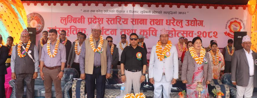 महोत्सवको उद्घाटन लुम्बिनी प्रदेशका उद्योग पर्यटन तथा यातायात मन्त्री प्रचण्डविक्रम न्यौपानेले गरेका हुन । ‘साना तथा घरेलु उद्योगको विकास र विस्तार, लुम्बिनी प्रदेशको समृद्धिको आधार’ भन्ने नारासहित आयोजना गरिएको महोत्सवको उद्घाटन गर्दै मन्त्री न्यौपानेले सरकार र निजी क्षेत्र मिलेर उद्यमशीलतामा कार्य गरिरहेको बताए । साना तथा घरेलु उद्योगले उत्पादन गरेको वस्तुले पर्यटकहरु आकर्षण गर्न सक्ने भएकाले उत्पादनलाई पर्यटनसँग जोडेर लैजानुपर्ने उनको भनाई थियो ।