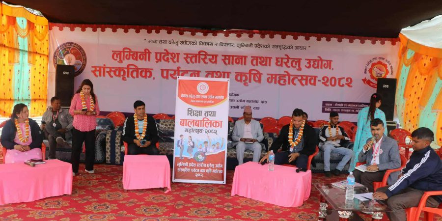 नेपाल घरेलु तथा साना उद्योग महासंघ जिल्ला शाखा दाङको आयोजना फागुन २८ देखि चैत १५ गतेसम्म ‘घरेलु तथा साना उद्योगको विकास र विस्तार, लुम्बिनी प्रदेश समृद्धिको आधार’ भन्ने नारा सहित आयोजना गरिएको ‘लुम्बिनी प्रदेशस्तरीय साना तथा घरेलु उद्योग, सांस्कृतिक, पर्यटन तथा कृषी महोत्सव–२०८२’ मा सोमवार बालमैत्री, बाल मनमनोविज्ञान र बालअधिकार सम्बन्धी प्यानलमा छलफल भएको छ ।